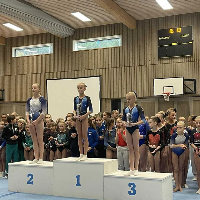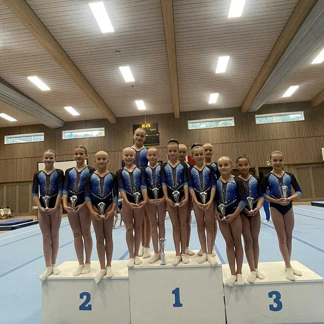 12-åringer: – Madeleine tok 1. plass,🥇 Madikken tok 3. plass🥉 og Celine tok 13. plass, Hedda 29, Lilly 31, Rani 49 og Eva 53. av 102 gymnaster.